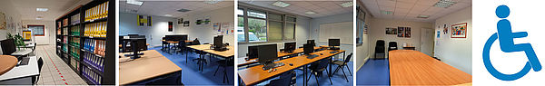 - 3 salles de formation adaptées aux différentes situations pédagogiques (travail en groupe, auto-formation, ateliers thématiques…)